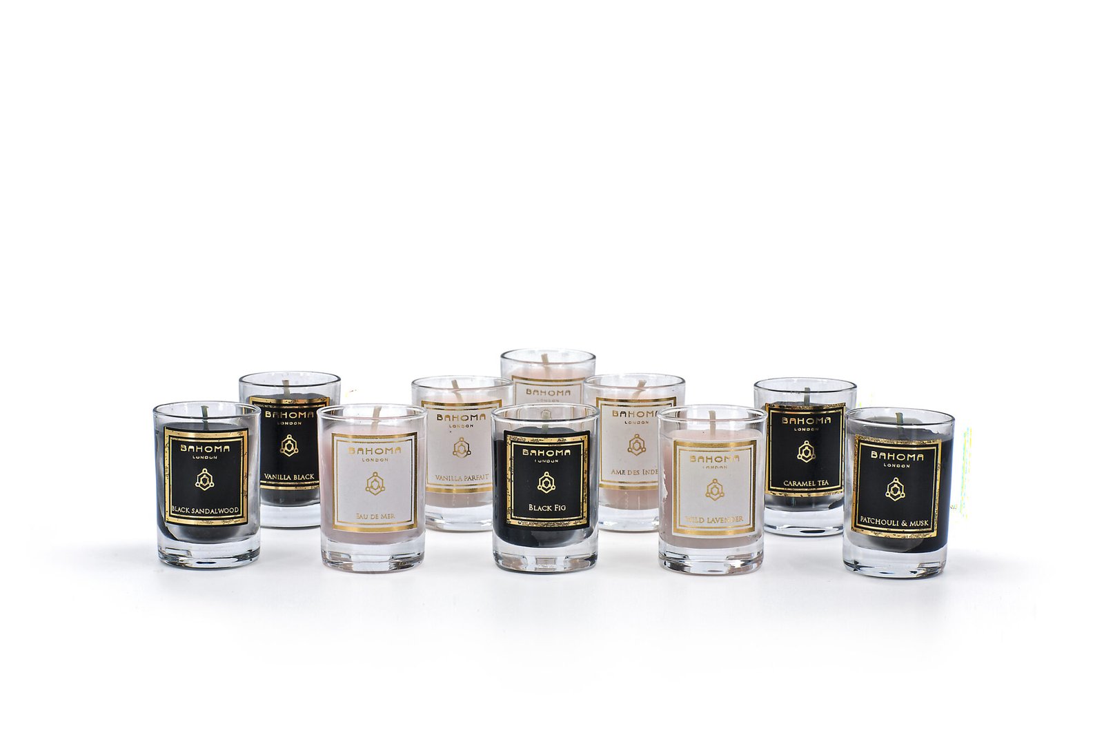 Vanilla Parfait, Black Fig, Ame des Indes, Vanilla Black, Grapefruit & Lime, Caramel Tea, Eau de Mer, Black Sandalwood, Wild Lavender, Patchouli & Musk